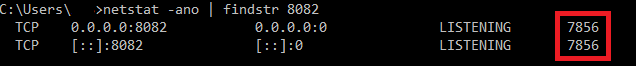 5) 8082 포트 다시 확인 -> 사용 중인 프로세스 없음 확인