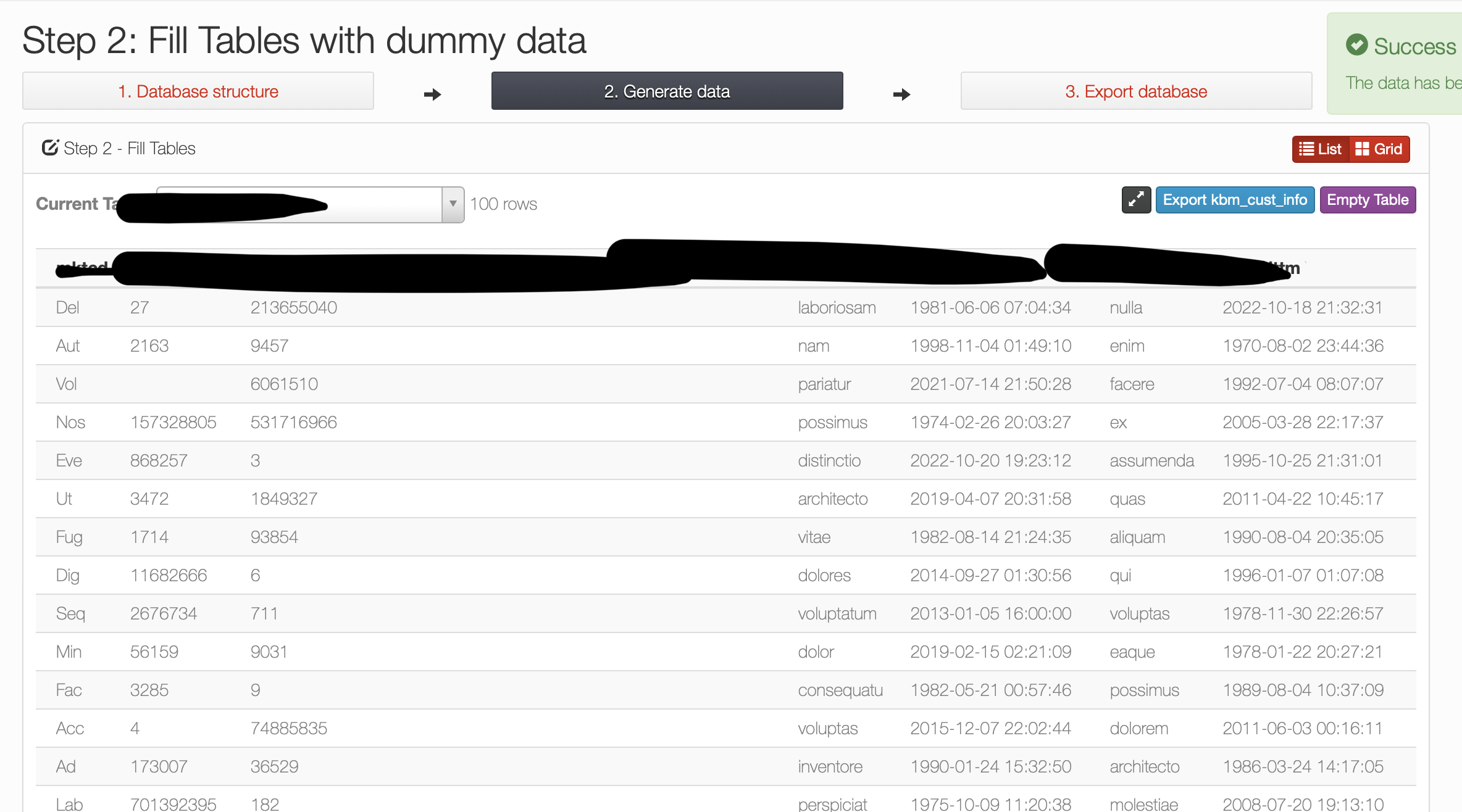 This application automatically generate database test data and allow to work and fill multiple mysql database tables. Generate test data for your database