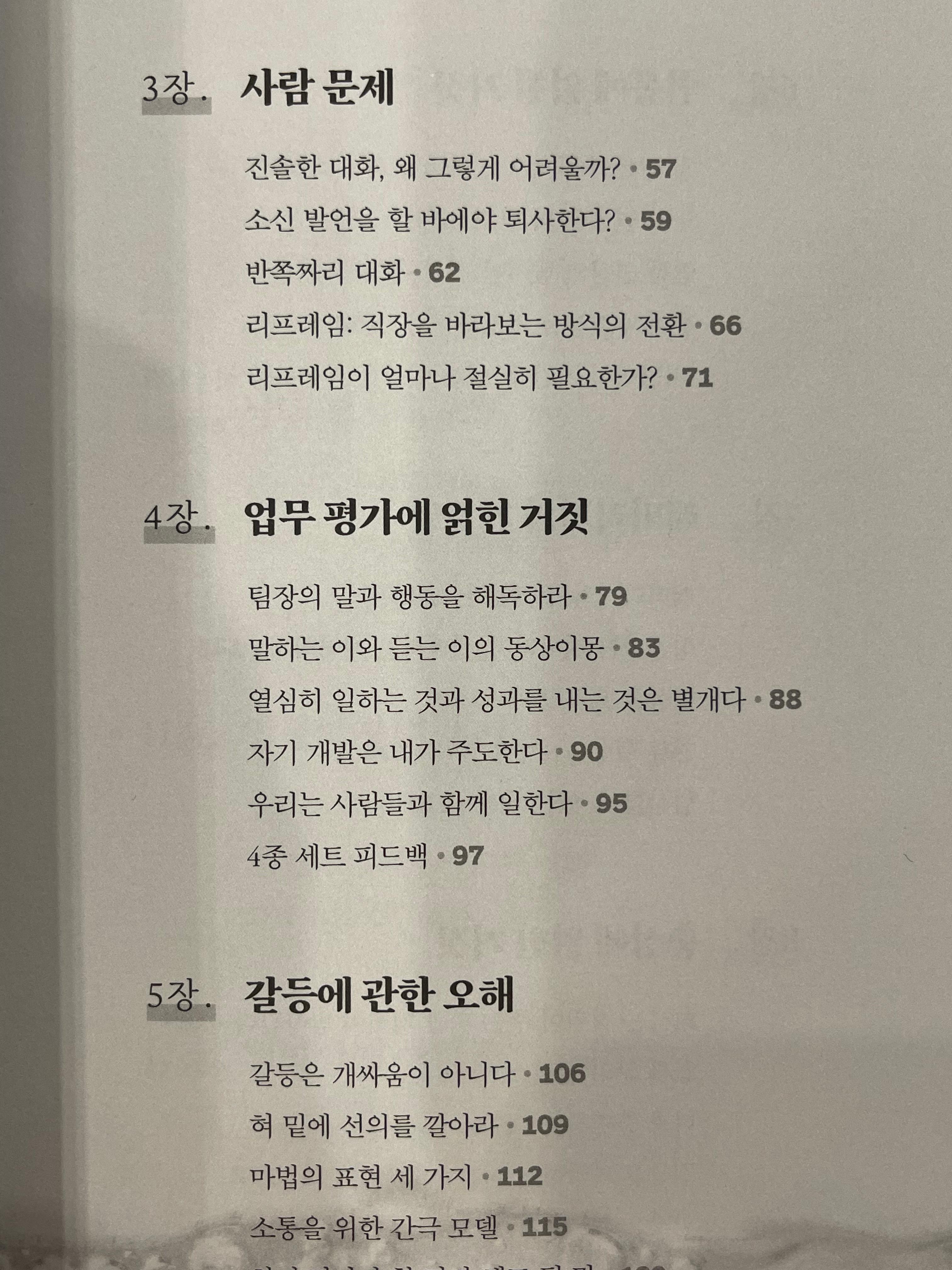 개인적으로는 3장. 사람 문제, 5장. 갈등에 관한 오해, 9장. 번아웃에 얽힌 거짓. 이 마음에 들었습니다.