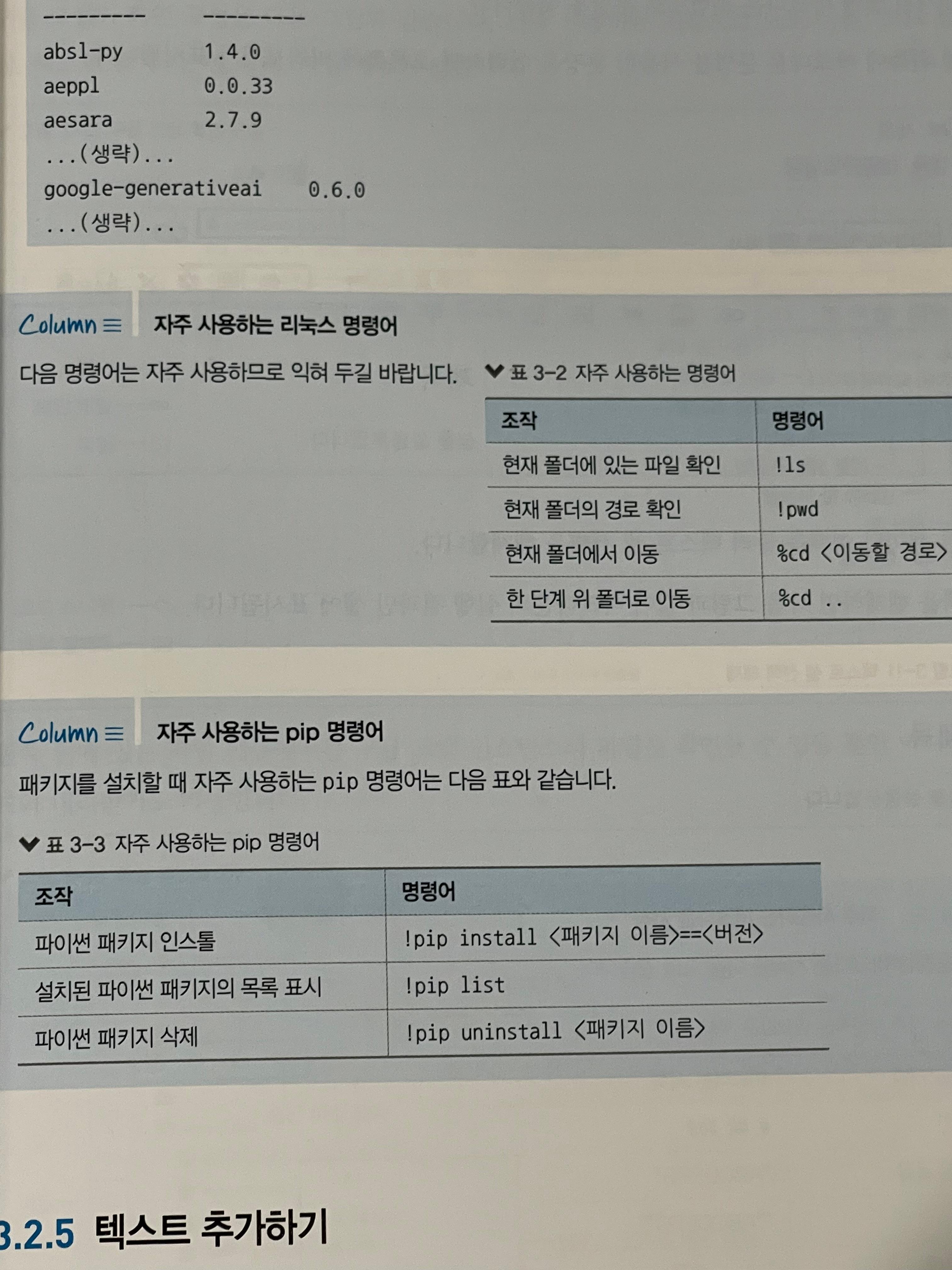 사진과 같이 자주 사용하는 명령어도 간단히 표로 정리해주어 도움이 됩니다.
